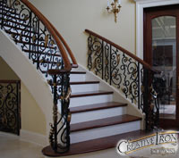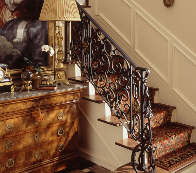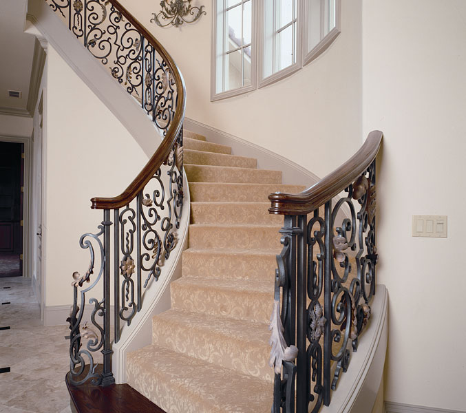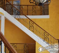 When used solely on a staircase this collection allows for a simple yet detailed look that does not overpower. Multiple elements within each panel keeps the detail high but repeating the same panel through out mutes the detail and lends a quiet sophistication about it. These panels look good as the sole element on a staircase but can be separated with single or multiple balusters. Like all iron panels, these are stocked in raw steel and coated to you specs in house. Custom bending can also be accommodated to fit curved staircases.