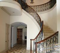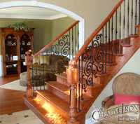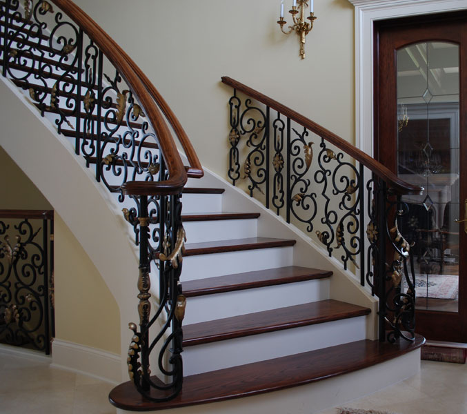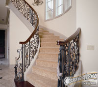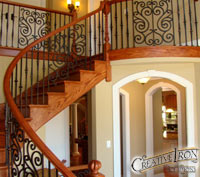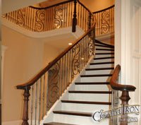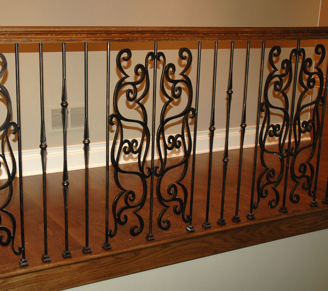 Updated design made from 1/2 inch square bar, these panels are easy to install and will add a touch of elegance to any staircase. The panels in this collection provide flowing scroll work that lends itself to a more simple and sophisticated design. These panels look good in pairs as well as separated with single or multiple balusters. Like all iron panels, these are stocked in raw steel and coated to you specs in house. Custom bending can also be accommodated to fit curved staircases.