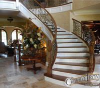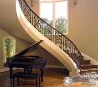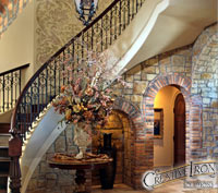 The napoli collection is tuscan style wrought iron scrolling, in a simple, no frills design. No banding, no dimensional leaves, just smooth 1/2" stock, in a traditional scrolled design. Stocked without legs so round, square, 1/2 inch, 5/8 inch bar, etc can be added/ Like all iron panels, these are stocked in raw steel and coated to you specs in house. Custom bending can also be accommodated to fit curved staircases.